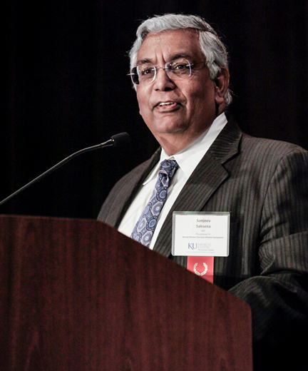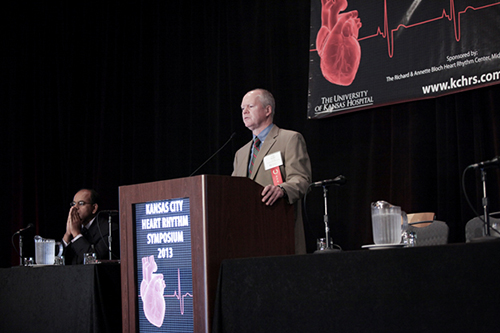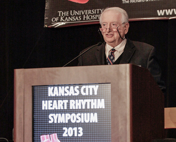 Dr. Albert Waldo was awarded with the Kansas University Pioneer in Cardiovascular Electrophysiology Award for his countless and distinguished contributions to the field of electrophysiology. Dr. Albert Waldo is Professor of Medicine at the Case Western Reserve University and was the keynote speaker for the 5th KCHRS. His talk was on the history of cardioversion. He summarized the work of various scientists leading up to the evolution of modern day cardioversion and defibrillation techniques. He especially emphasized the works of Dr. Bernard Lown and Dr. Naum Gurvich. Later in his talk, Dr. Waldo presented the works of Dr. Michel Mirowski and Dr. Morton Mower in leading up to the development of implantable cardioverter defibrillators.