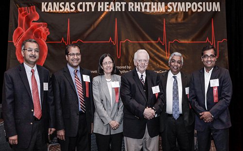 Left to right Dr. Sumer Dhir, Dr. Abraham Kocheril, Dr. Kathleen Blake, Dr. Sanjeev Saksena and Dr. Dhanunjaya Lakkireddy